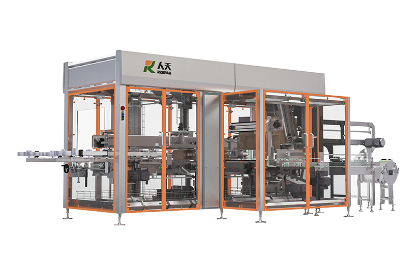 該設備專為規則盒物料側推裝箱設計,其進料部分配備盒狀物料翻轉機構和疊層整理機構,具有自動開箱和自動封箱的功能,獨特的單側雙工位外置膠帶盤設計,更換膠帶無需停機,整機設計遵循CE標準,操作安全可靠。